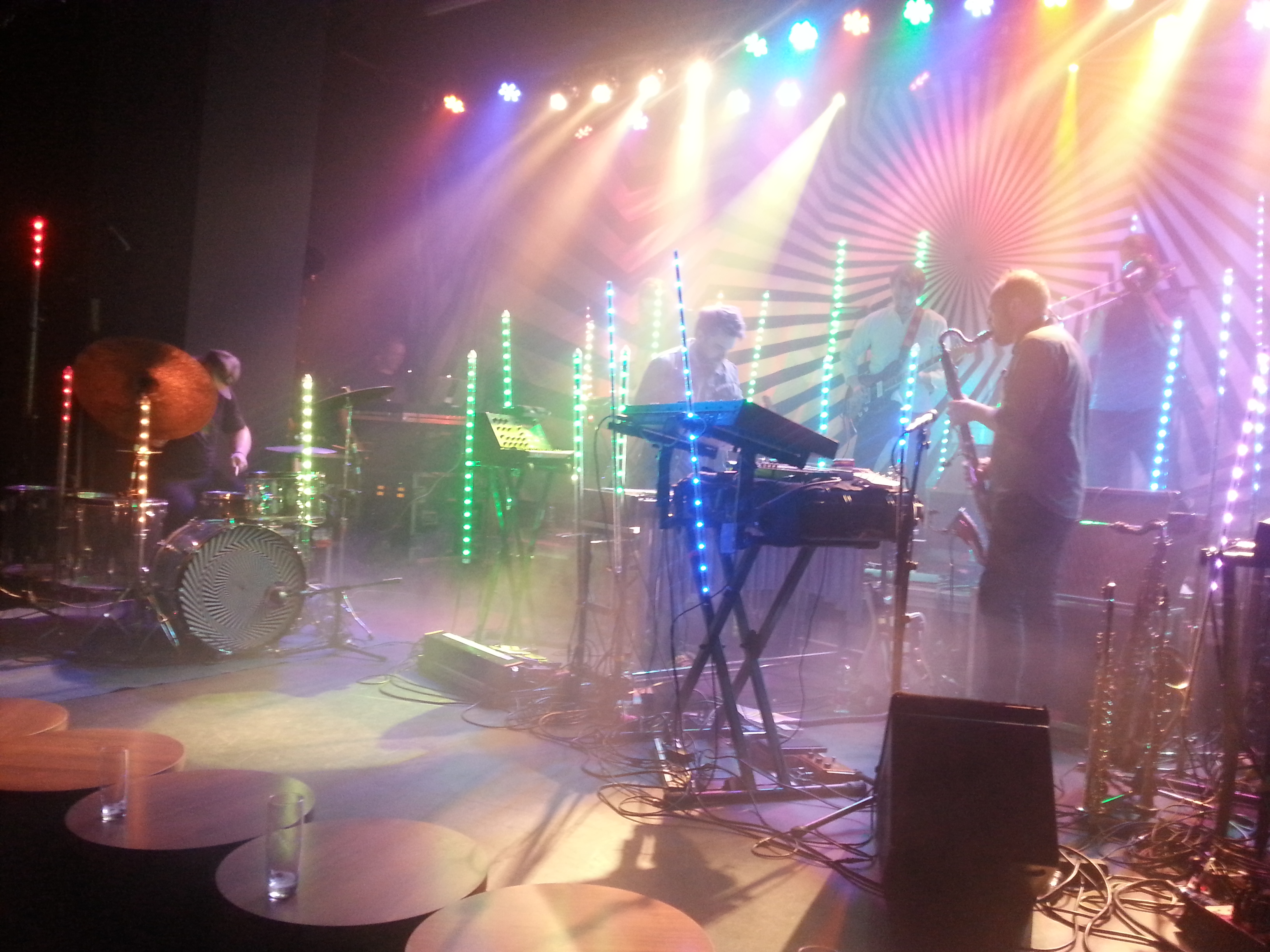 Fabulous evening of out-there prog/jazz/electronica action from this phenomenally talented Norwegian octet. It’s been ten long years since I last saw Jaga Jazzist at the Pavilion Theatre in Brighton, an intimate upstairs venue that will forever hold a special place in my heart by dint of the fact that I saw my first Swans concert there (the Children of God tour in 1987). Back in 2005, though, I knew precious little about jazz of any stripe, and it was only thanks to my friend J. coming down to Brighton to see this group that I ended up at the Pavilion at all. Come to think of it, it must also have been around that time that I saw the late, much missed Esbjorn Svensson and his trio at the Dome next door, another important step in my discovery of jazz. But I digress.